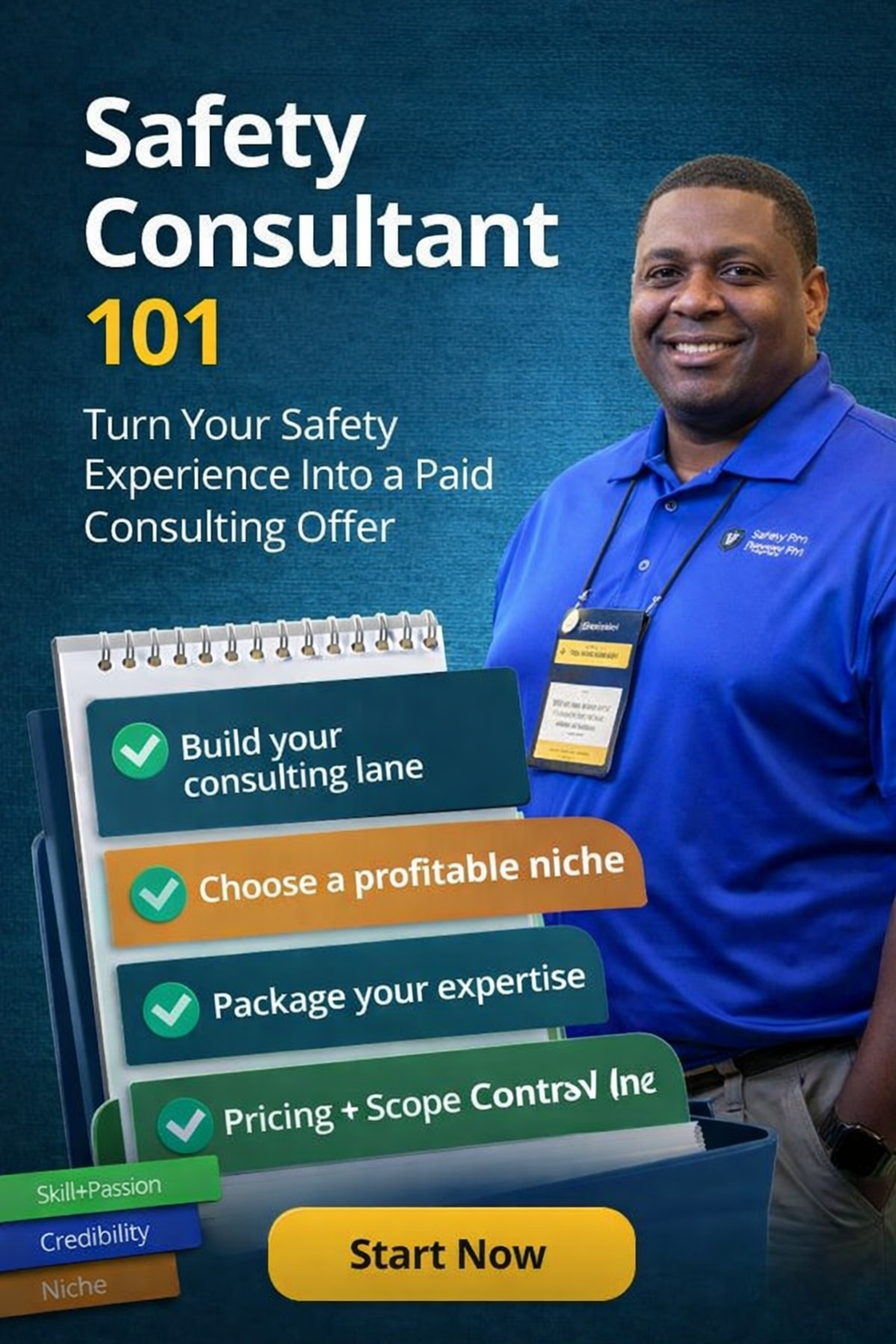 Safety Consultant 101 is a practical, step-by-step training that helps you turn your existing safety experience into a real consulting offer—one that’s clear, marketable, and priced like a professional service.